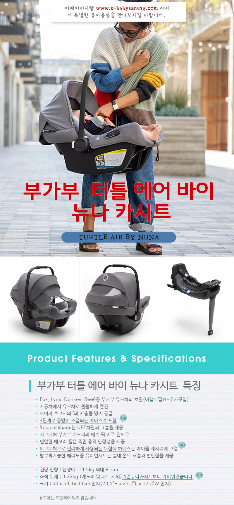 (Turtle Air by Nuna)/베이스포함/신생아 카시트